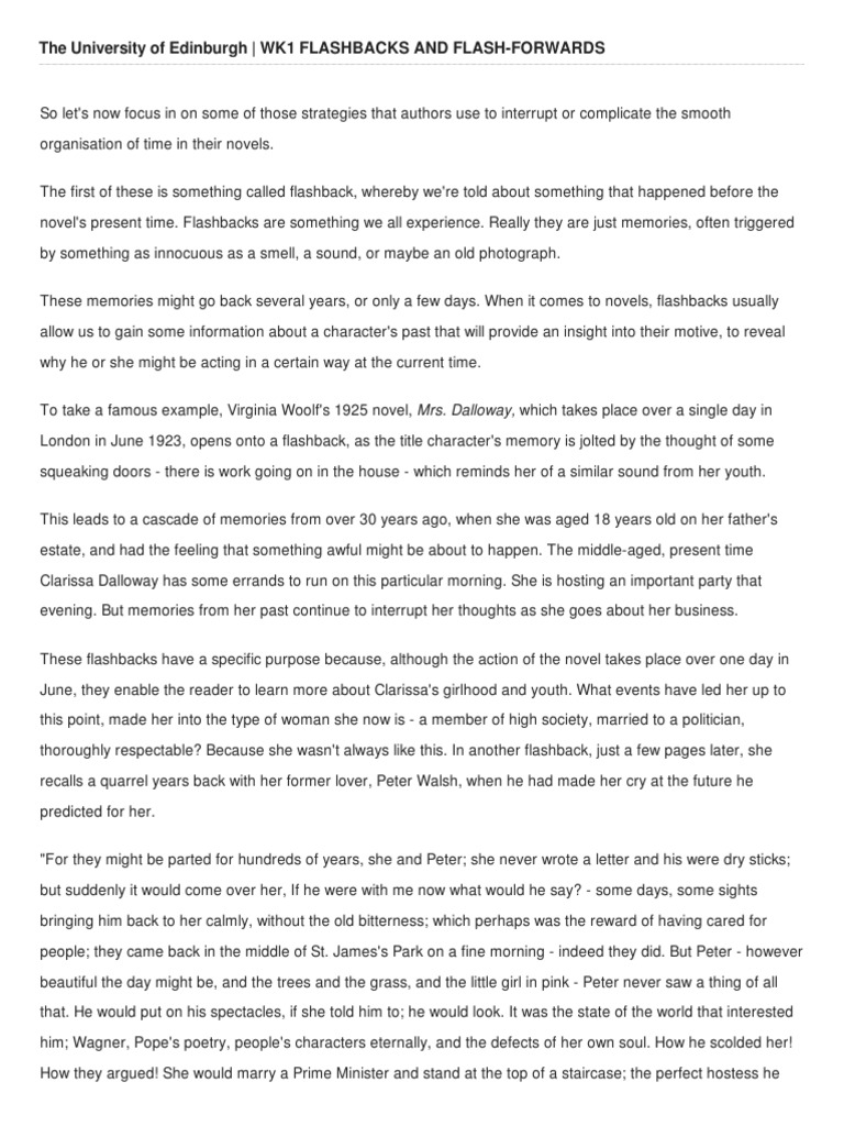Wk1 Flashbacks And Flash Forwards Pdf Mrs Dalloway A Christmas Carol